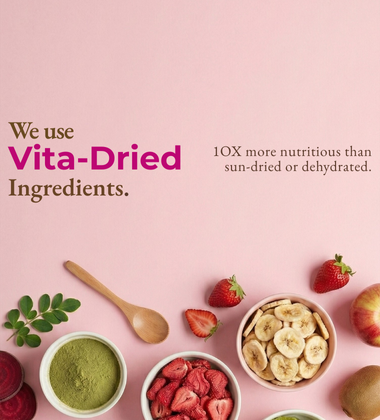 We use Vita-Drying technology because we were tired of 'healthy' foods that weren't actually healthy. Our process preserves 10X more nutrients than Sun-drying and Dehydrating. You'll see the difference in the color, aroma and taste. You'll feel the difference in your health.